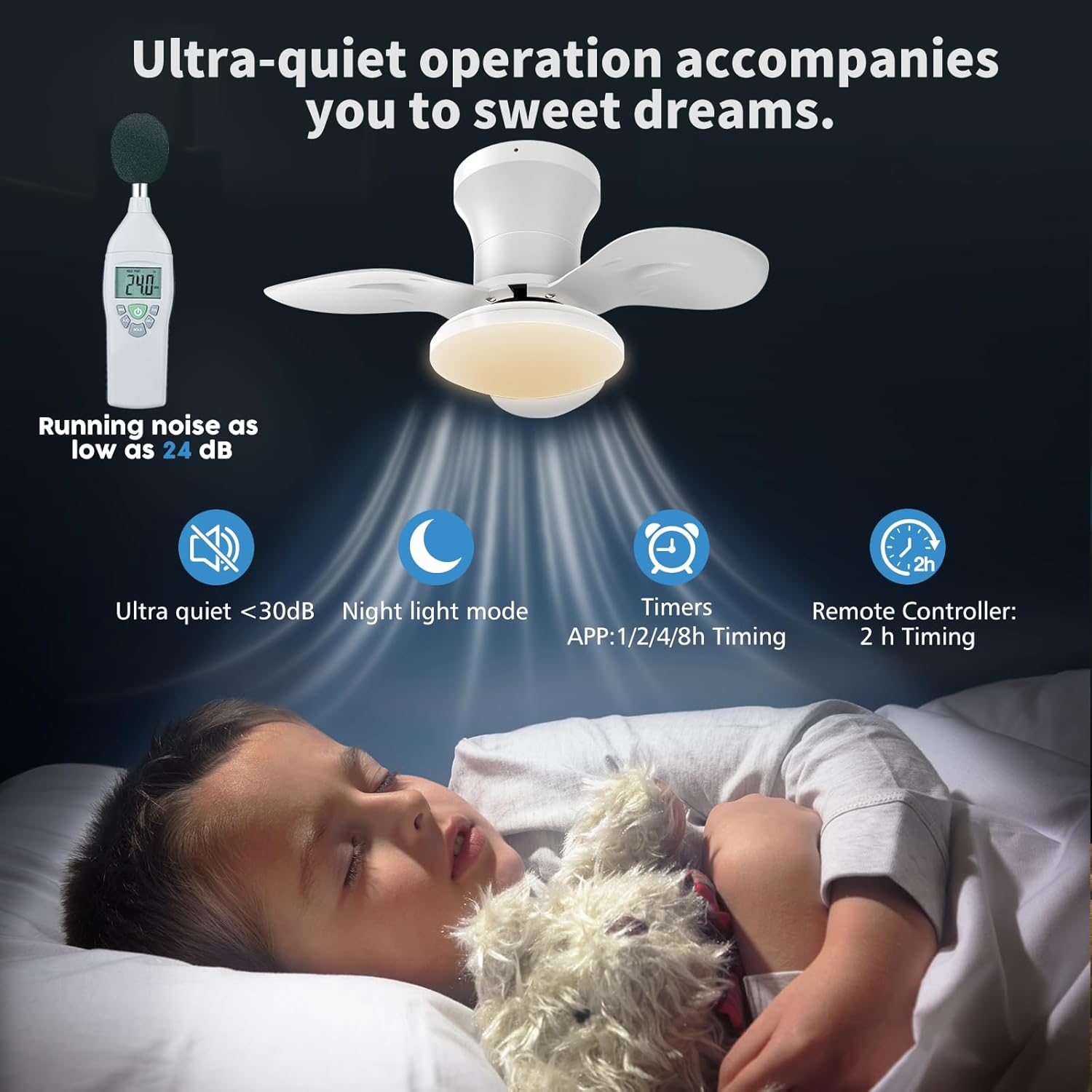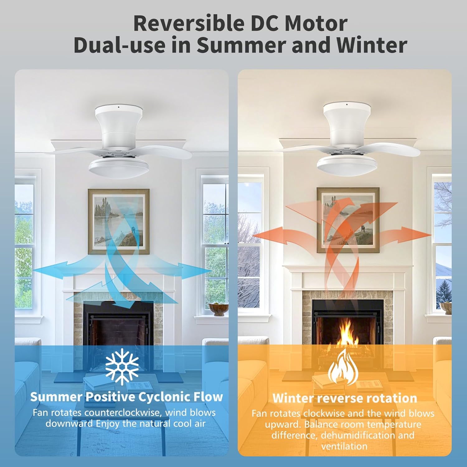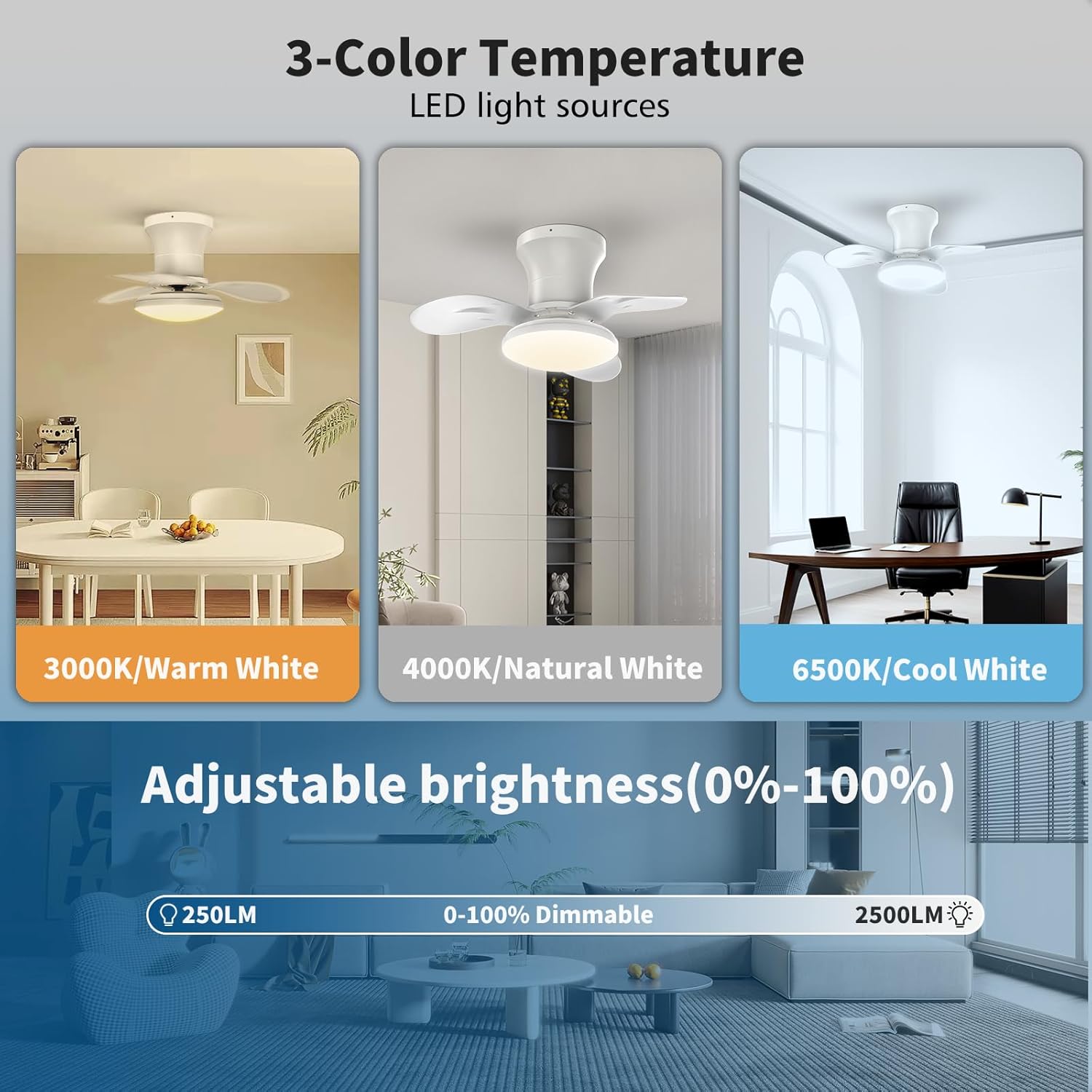 22inch Ceiling Fans with Lights, 6-Speed Reversible DC Motor, Dimmable LED Light, 3CCT, Quiet Operation, for Kitchen Bedroom Dining Room Patio (White)