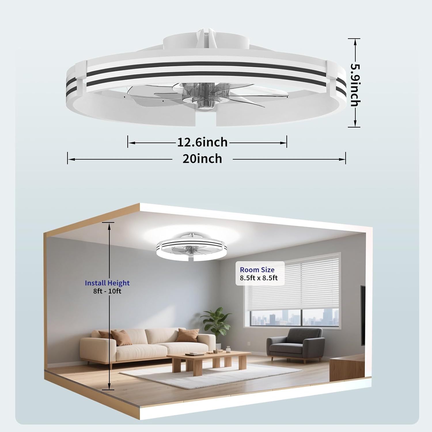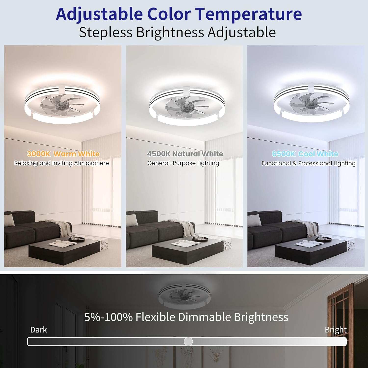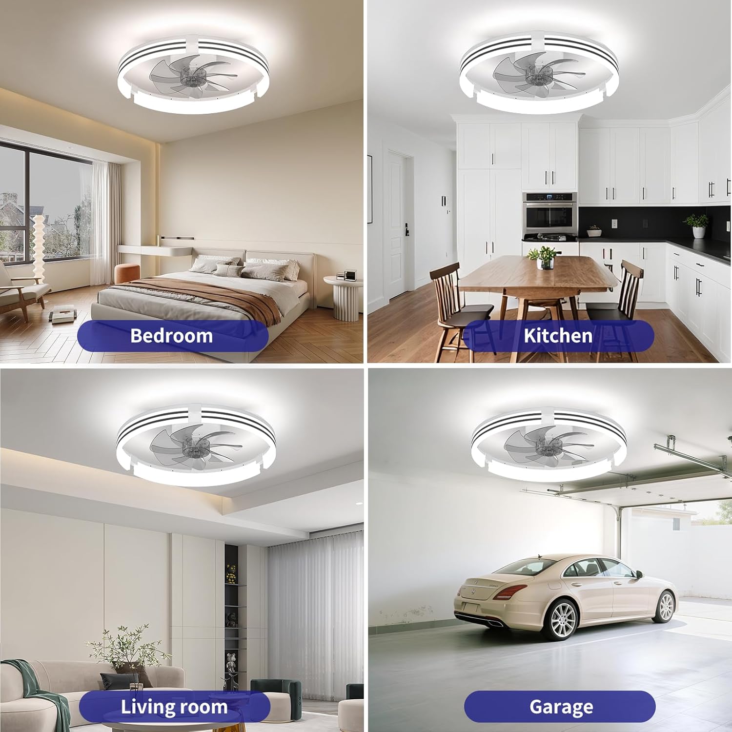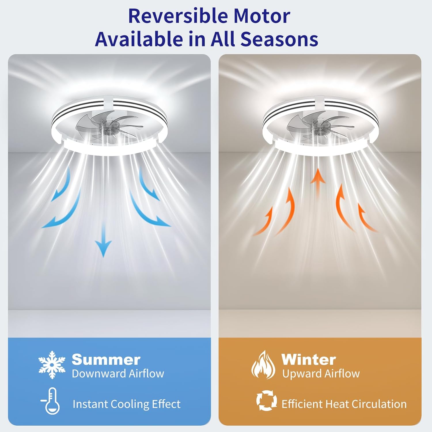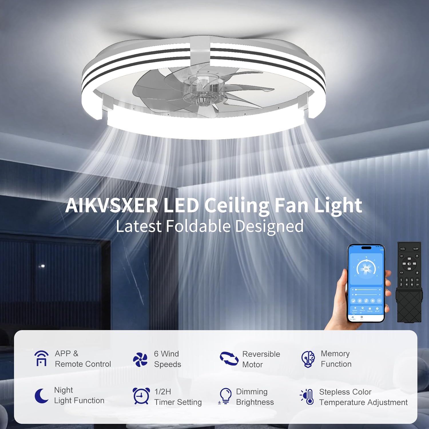 AIKVSXER Ceiling Fans with Lights and Remote, 20 Inch Low Profile Fandelier with APP Control, Ultra Quiet, 3CCT and 6 Wind Speeds for Bedroom, Living Room Modern Flush Mount Fan Light