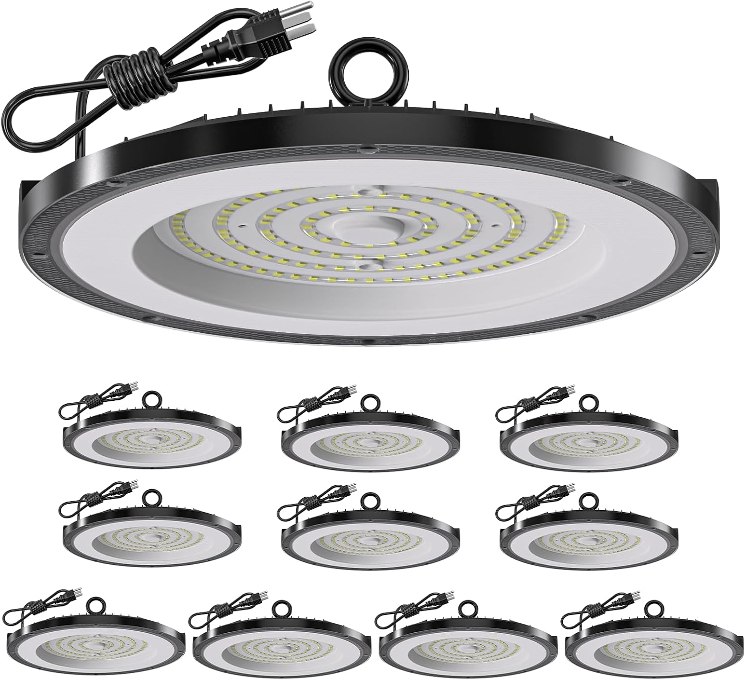 AIKVSXER 200W LED High Bay Light 30000LM UFO Shop Light 6000K Daylight IP65 Waterproof for Warehouse Garage Barn Factory Workshop 5FT Cord with US Plug 10 Pack