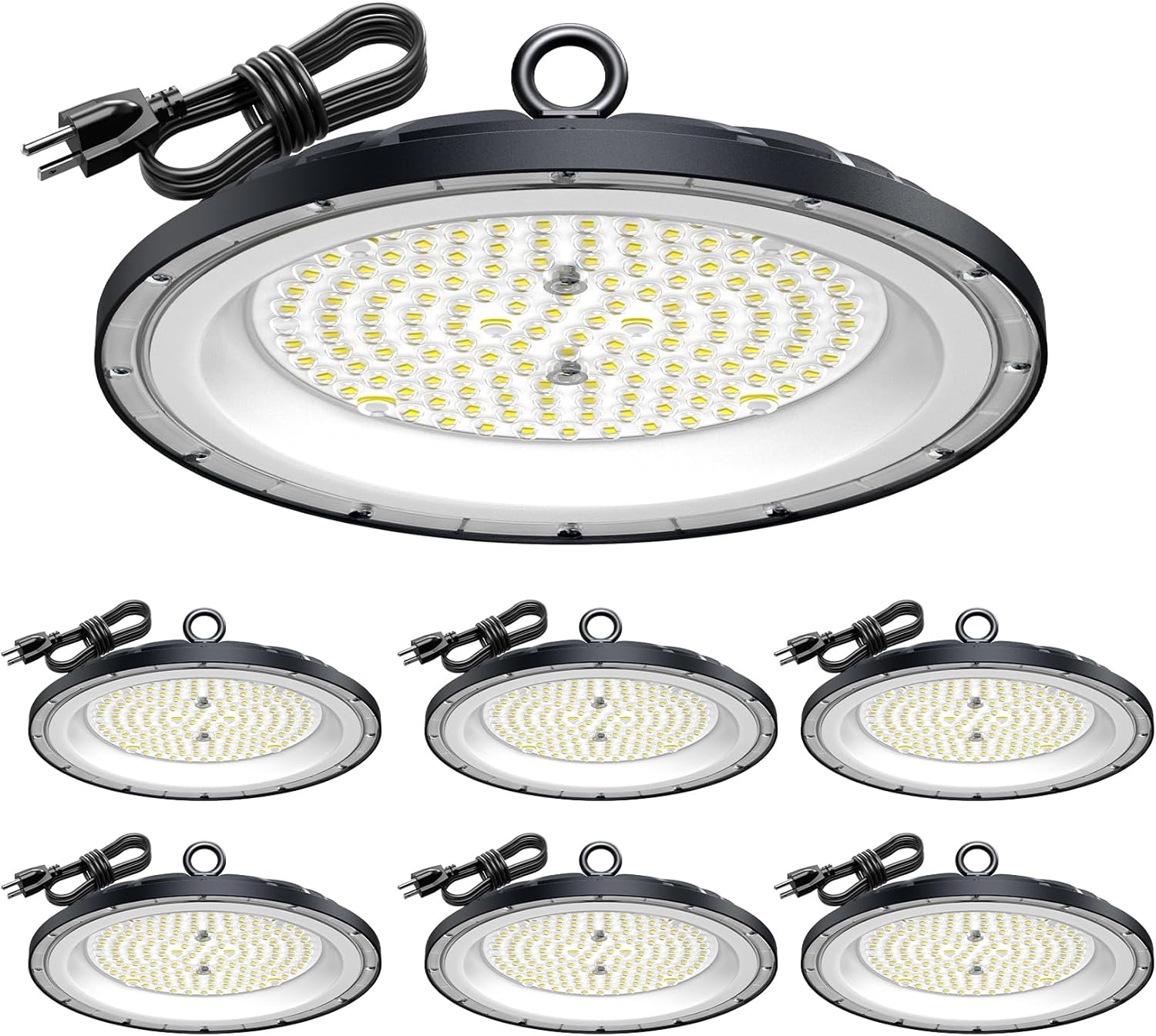 AIKVSXER 200W UFO LED High Bay Light, 30000LM Shop Lights, 6000K Garage Lights IP65 Waterproof Commercial Bay Lighting for Warehouse, Gym, Factory, Workshop Plug & Play, 5FT Power Cord 6 Pack