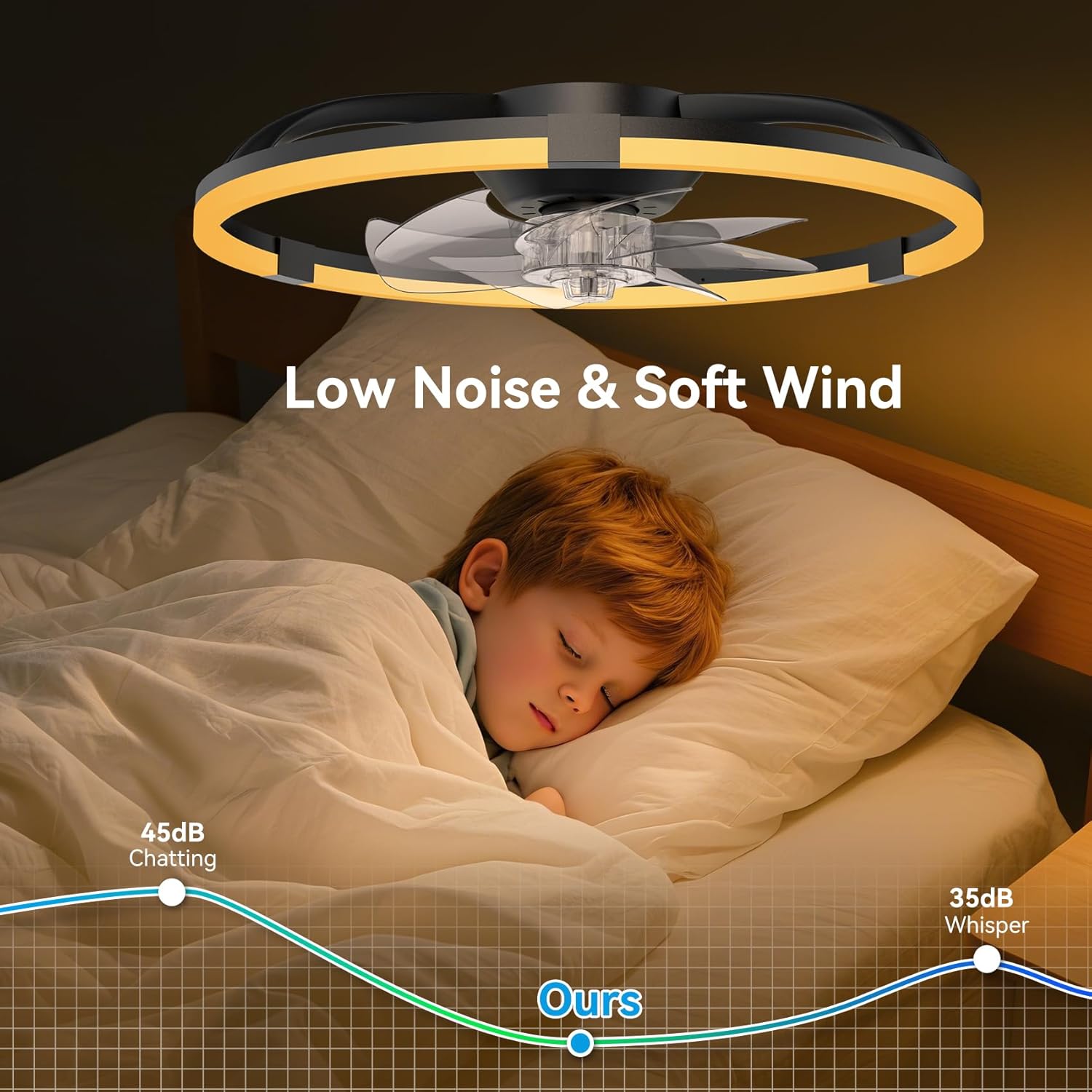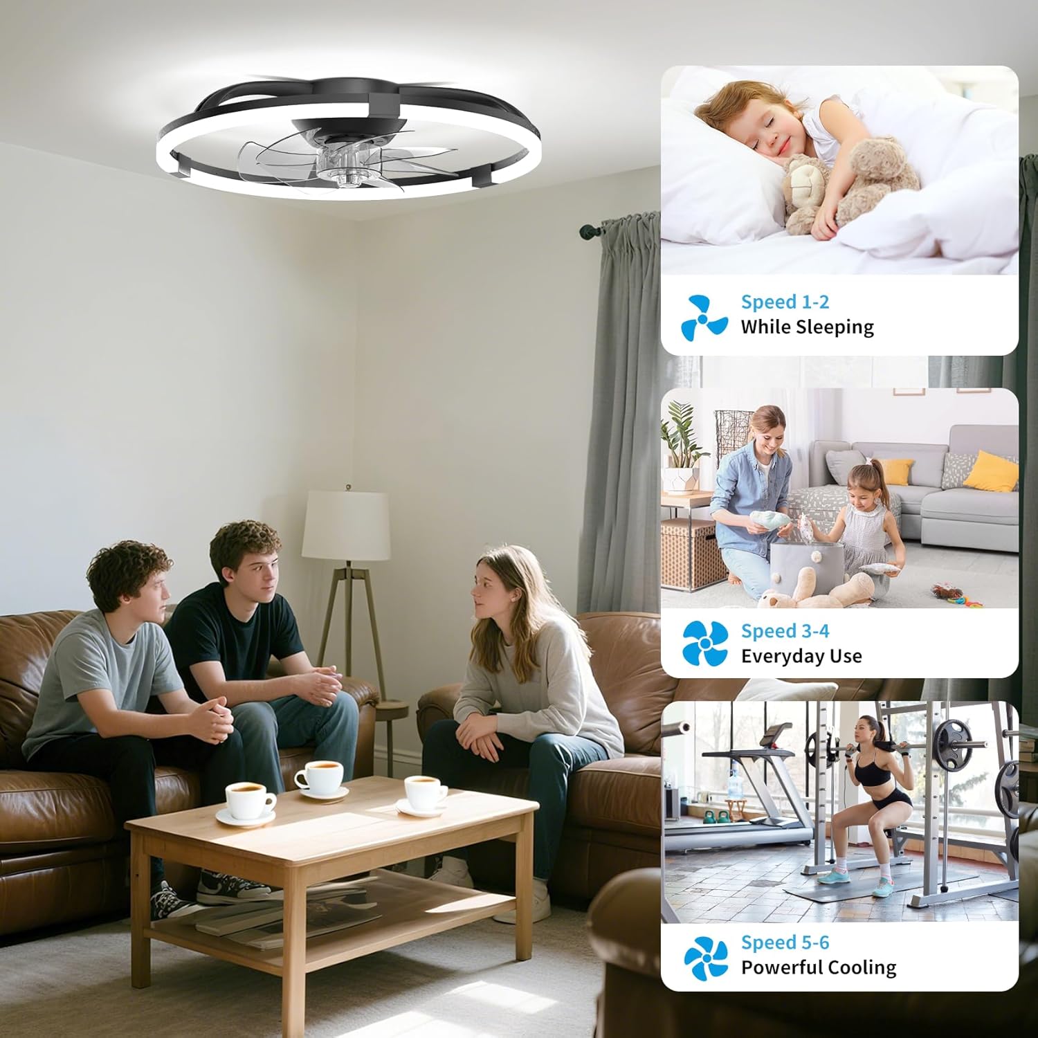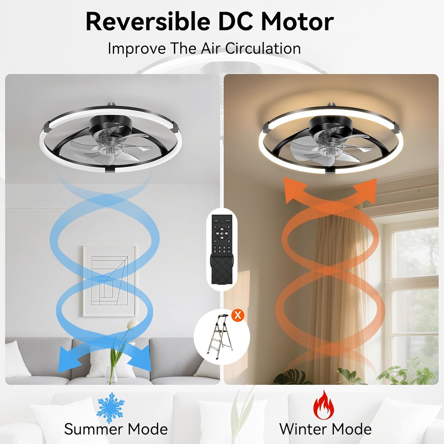 Ceiling Fans with Lights and Remote, 20'' Low Profile Ceiling Fan, 3000-6500K Dimmable Modern Flush Mount LED Fan Light, 6 Wind Speeds, Ceiling Fans for Bedroom